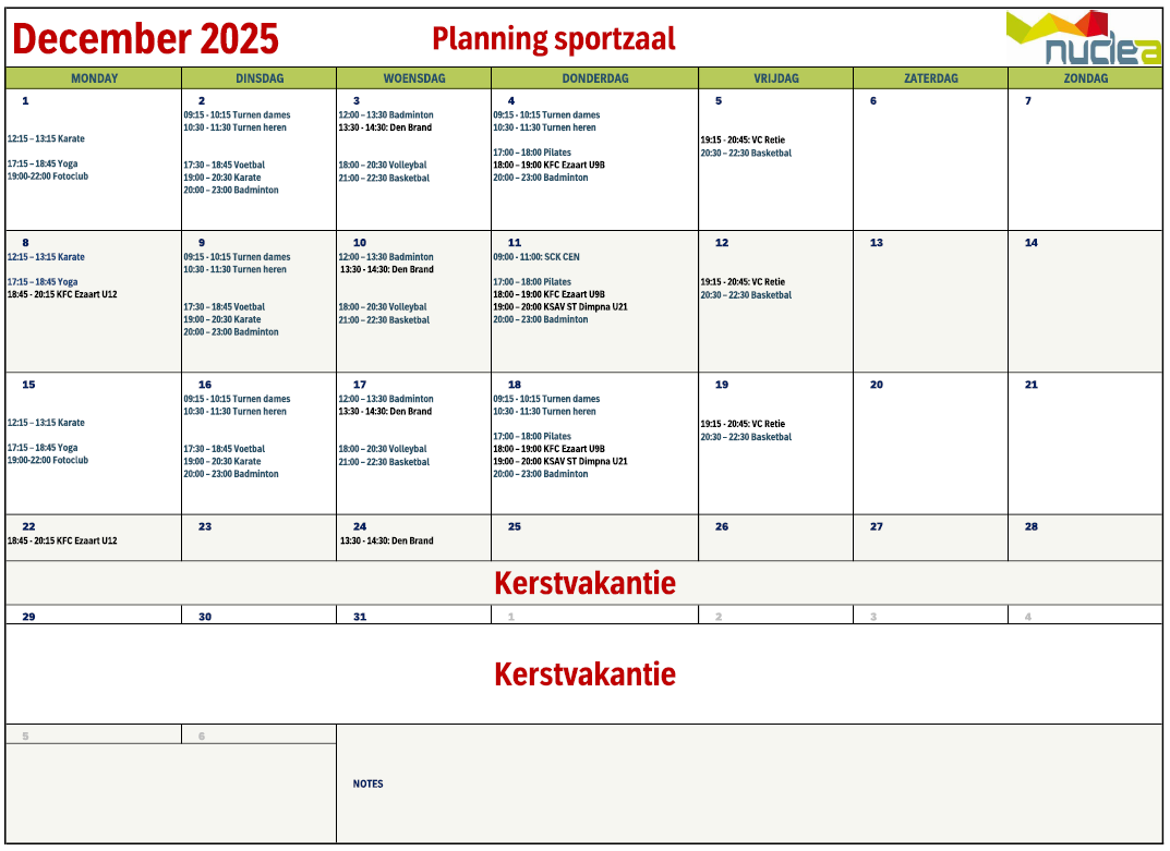 Vous pouvez trouver le programme de notre gymnase pour le mois de decembre ici.